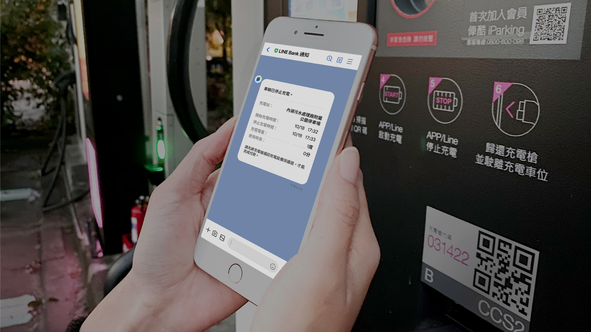 此外,電動車車主至全台共30座iCharging DC直流充電站,能使用CCS1與CCS2兩種規格的充電服務。事前僅需將LINE Bank服務綁定車牌號碼,即可掃描充電樁上的QRcode進行充電,並在按下停止充電鍵後,完成自動扣款且收到LINE通知,讓車主掌握充電、付款紀錄。